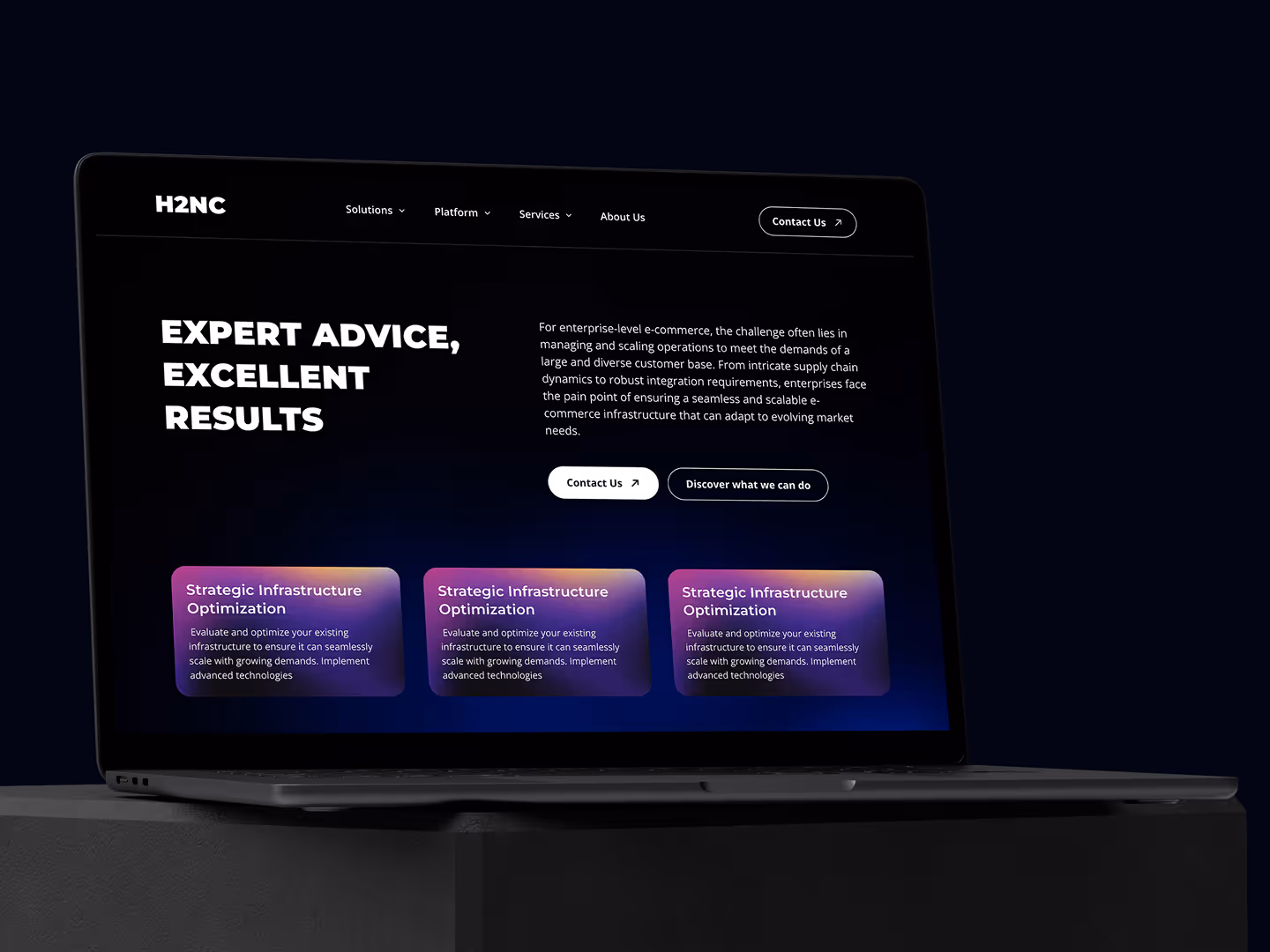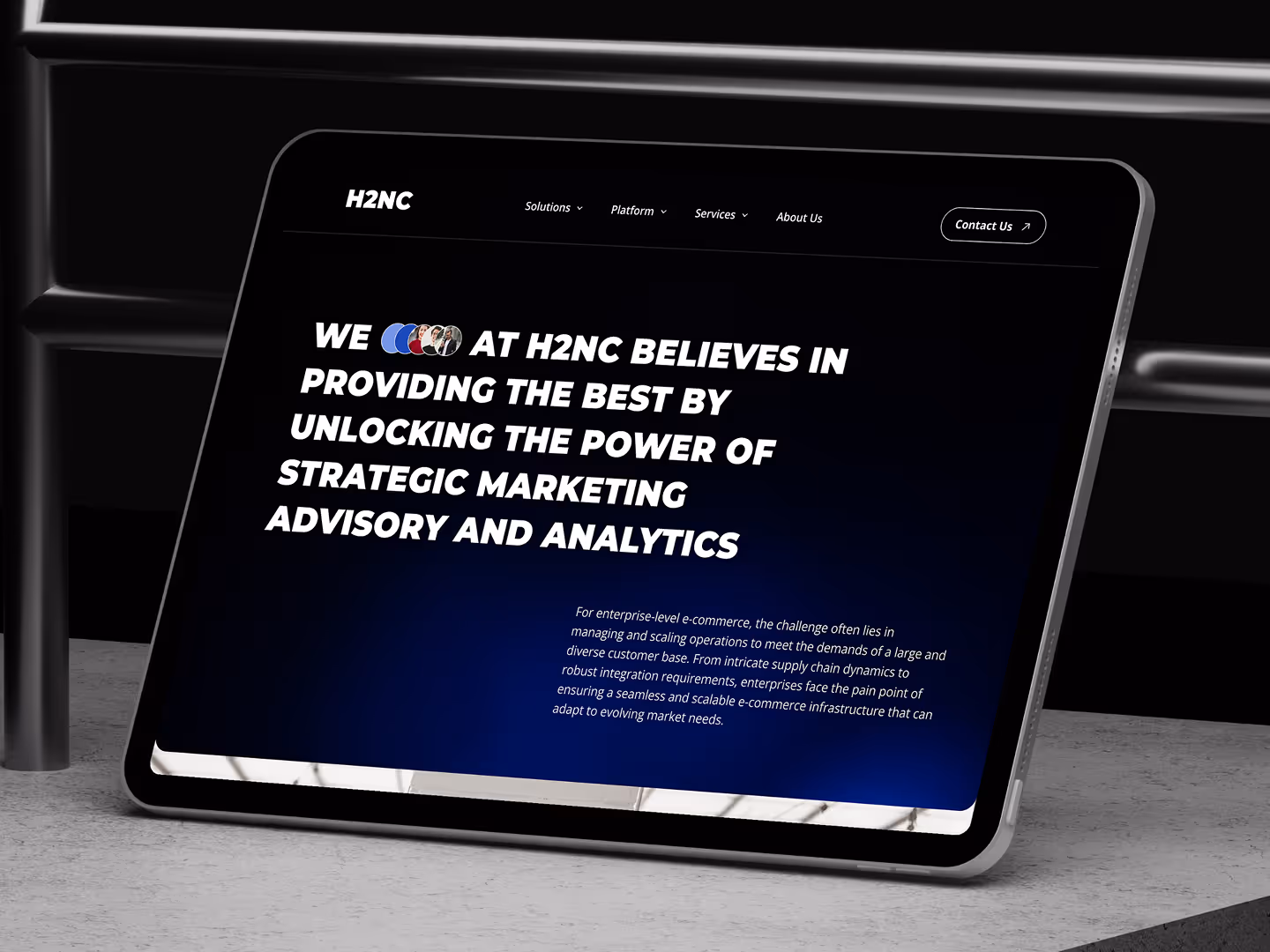 Introducing "H2NC," a dynamic company specializing in unlocking the power of strategic marketing advisory, seamless e-commerce solutions, and comprehensive analytics. As a designer for this project, my task was to create a digital presence that reflects the company's expertise in e-commerce marketing and analytics while conveying a sense of professionalism and innovation.