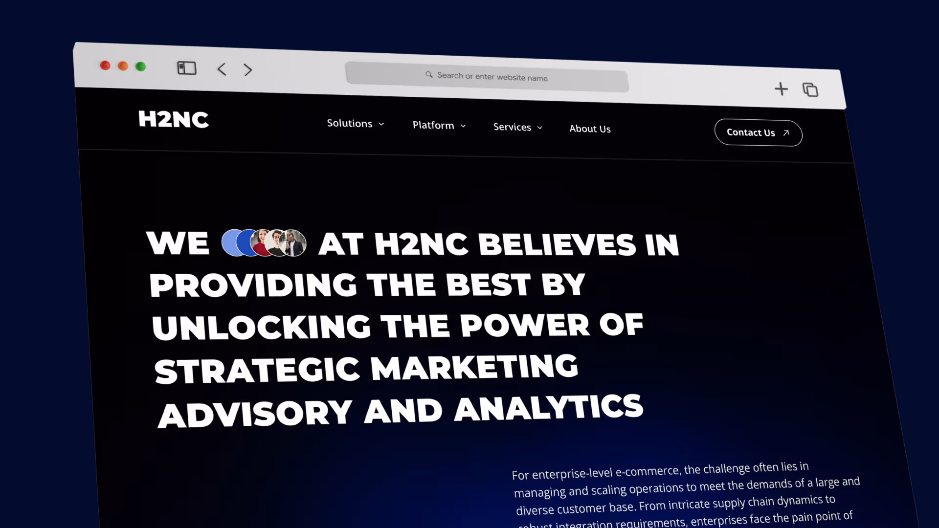 The collaboration with "H2NC" began with a thorough understanding of their core offerings and target audience. With a focus on e-commerce marketing advisory, analytics reporting, and Shopify performance optimization, the project aimed to showcase the company's unique value proposition and expertise in helping businesses thrive in the digital landscape.
