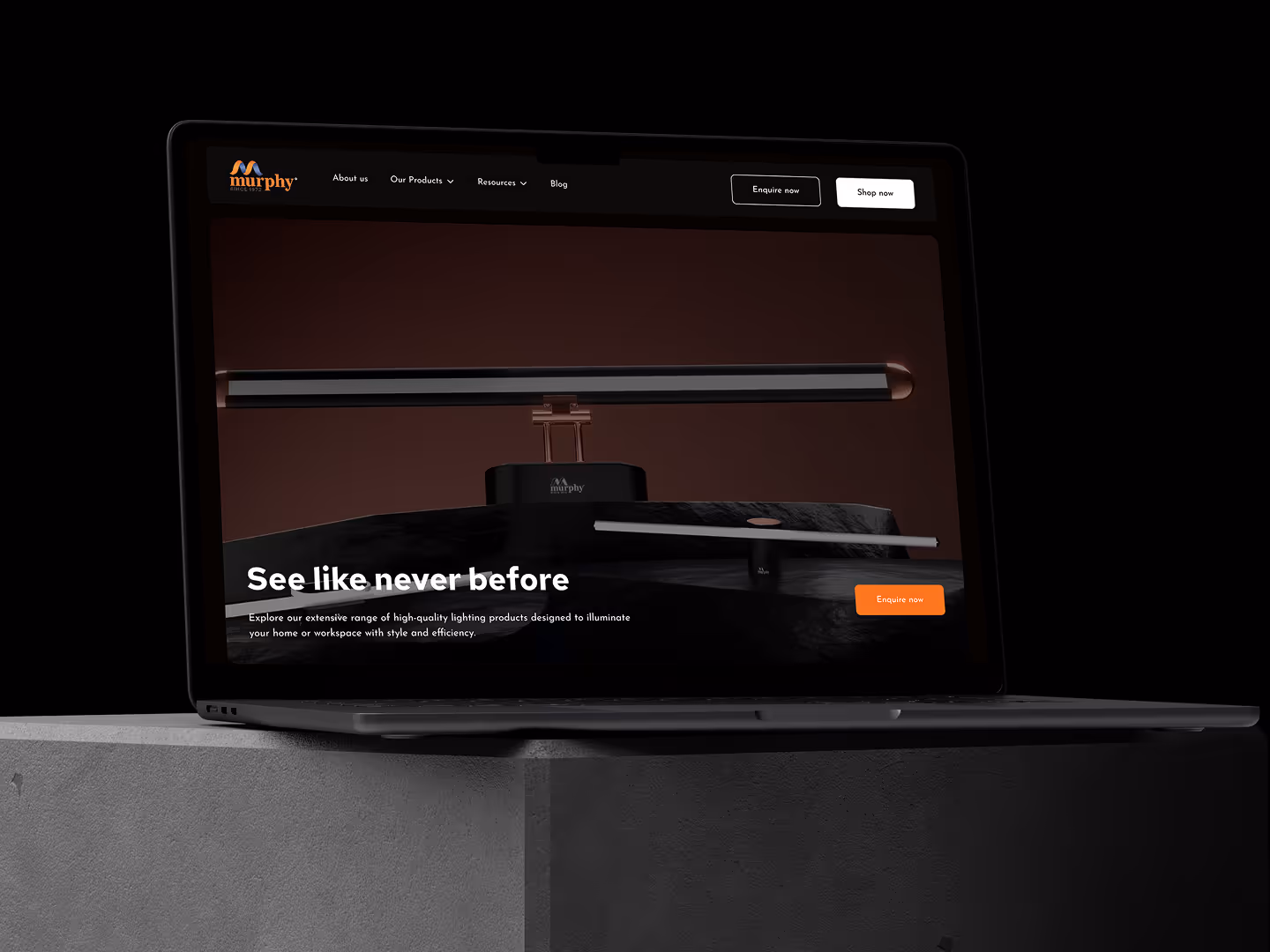 The project began with a clear direction to create an immersive online presence that reflects Murphy Lightings’ legacy and product depth. The requirement was to move away from traditional corporate lighting websites and instead focus on a modern, aesthetic-driven experience that captures attention and encourages user enquiries. The dark theme and visual emphasis were chosen early in the process to create a mood-driven, high-impact interface.