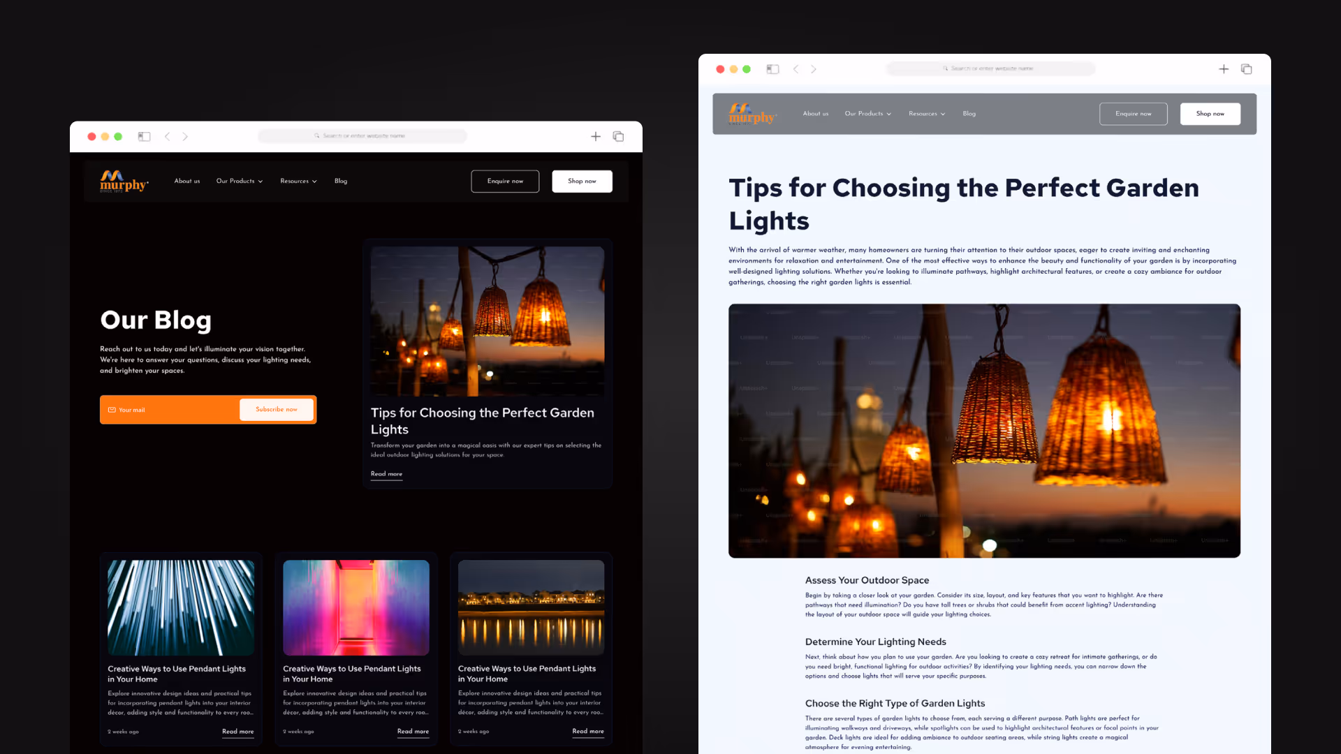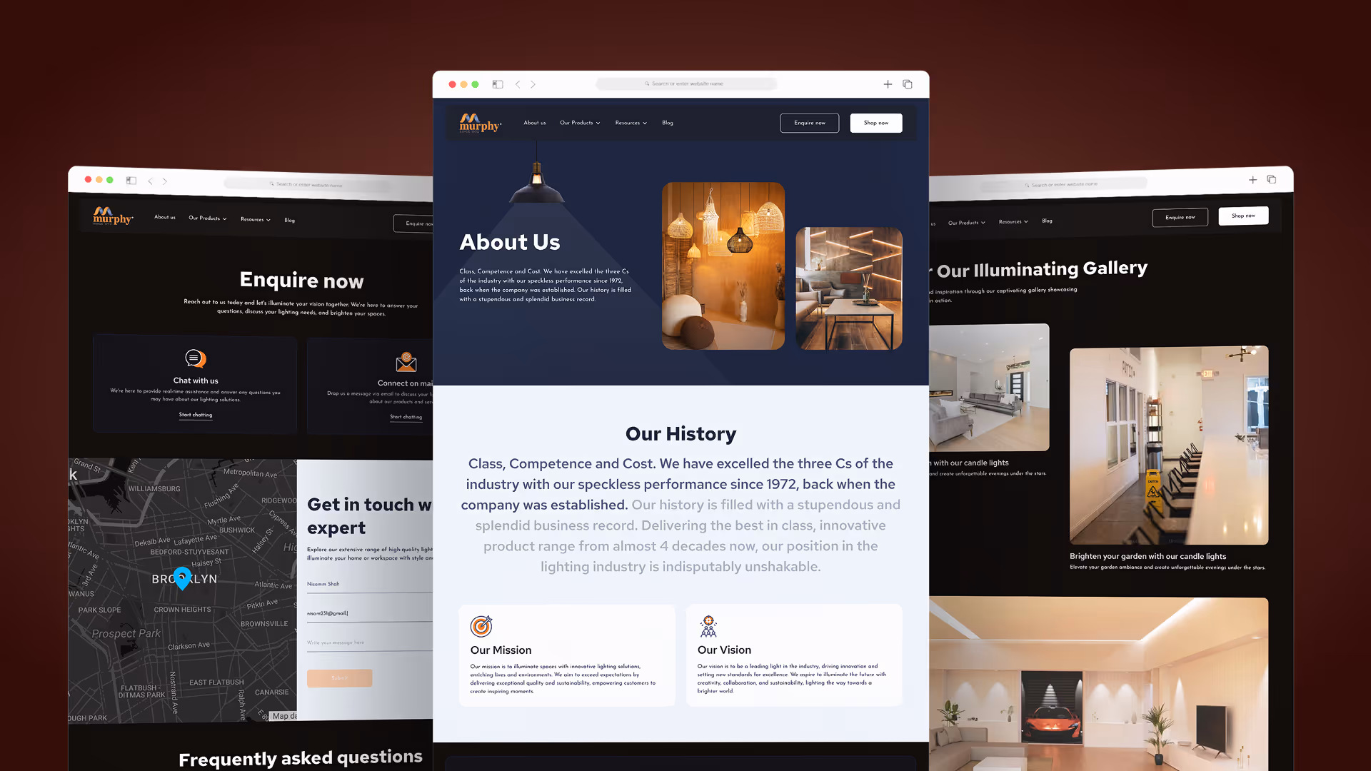 Through thoughtful design decisions and close alignment with the client's goals, the Murphy Lightings website transforms traditional product browsing into an inspiring digital experience. By combining immersive visuals with a user-focused structure, the platform not only elevates the brand’s identity but also empowers users to explore and engage with confidence.